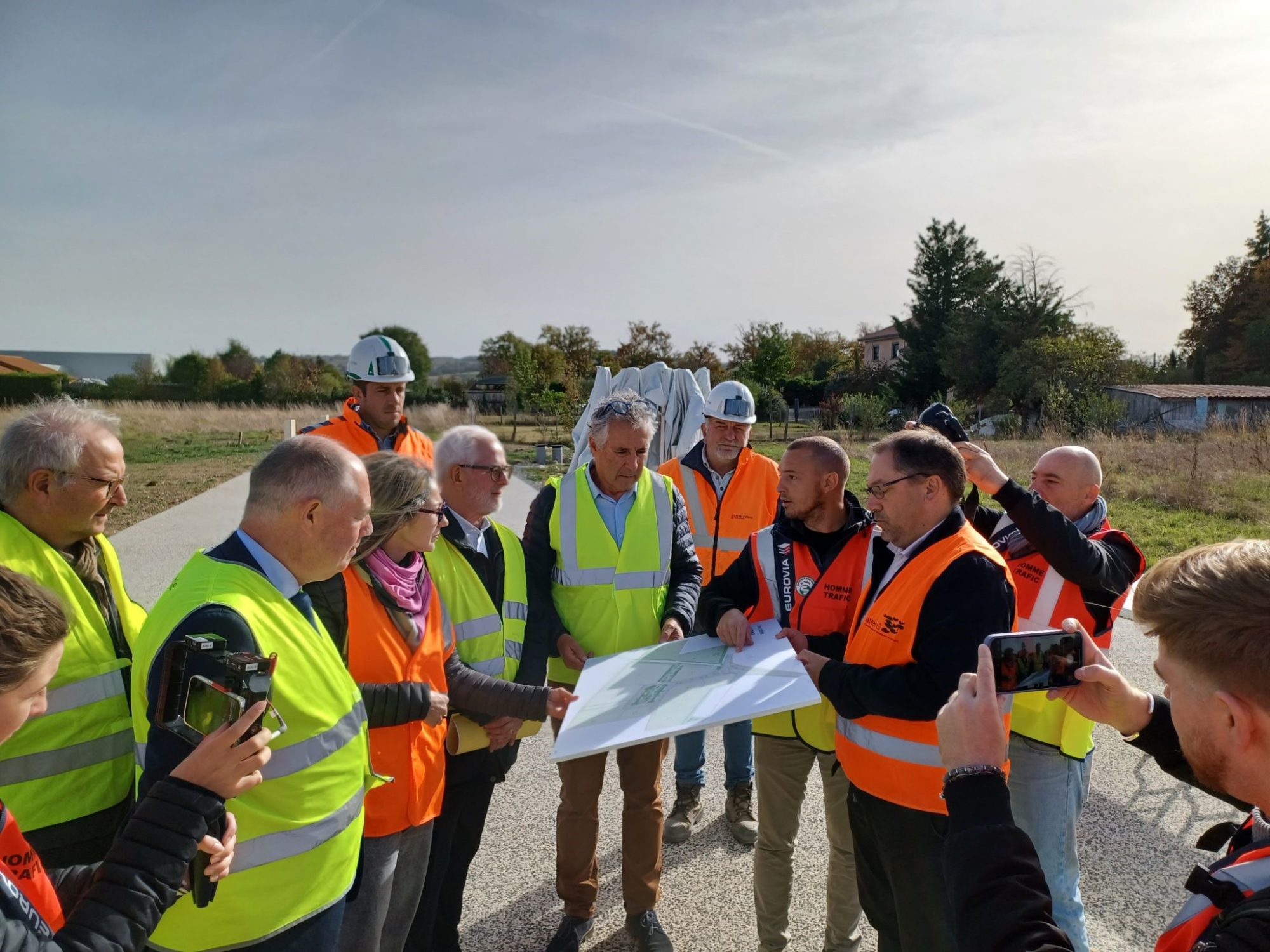 Ce début de semaine a été marqué par une visite de chantier en présence d’élus métropolitains et communaux guidés par André CHARBONNIER (maire), Nora BERROUKECHE (VP Saint-Etienne Métropole) et Denis CHAMBE (CMD Saint-Etienne Métropole) et Luc FRANCOIS  (Président de CAP METROPOLE), témoins de l’avancée significative des travaux de la ZA La Grange. L’occasion de saluer l’ambition portée pour cette zone d’activités « nouvelle génération » sur le territoire de Saint-Etienne Métropole pour laquelle les enjeux de paysage, d’insertion et d’environnement sont au cœur de la conception et de la réalisation. L’ensemble des participants ont également souligné l’implication de la maîtrise d’œuvre et des entreprises de travaux dans la réalisation du projet.