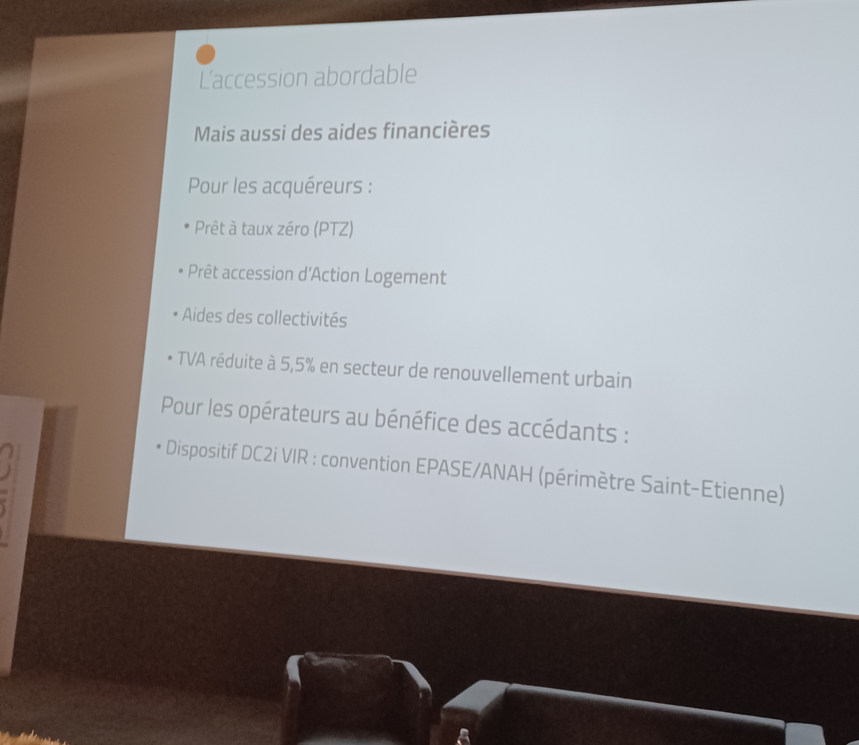 Les intervenants à la table ronde ont ainsi pu présenter des initiatives innovantes afin de répondre aux caractéristiques ligériennes : le dispositif DC2i VIR expérimenté par l’EPASE, les aides aux primo-accédants déployées sur Loire Forez agglomération, le PSLA, produit attractif proposé par les bailleurs du territoire, les réflexions partagées sur les atouts et les inconvénients de la création d’un OFS et au-delà de notre territoire avec le retour d’expérience de Clermont Auvergne Métropole du projet BAMBA animé par Villes Vivantes sur la Ville de Clermont-Ferrand.